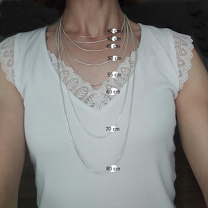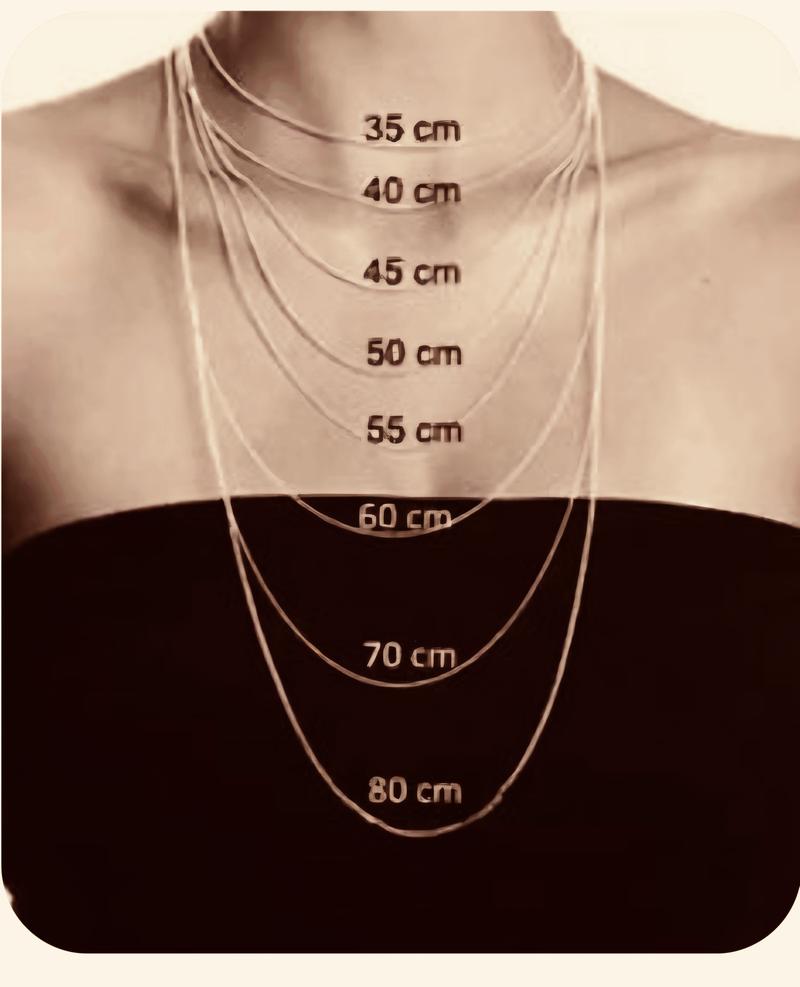 - Choker: 30-40 cm – idealny do stylizacji z odkrytą szyją.